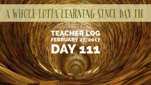 Teacher Log Teacher Log February 27, 2018 Day 111 – a lotta learning since day 110 February 27, 2017 Bryon Carpenter